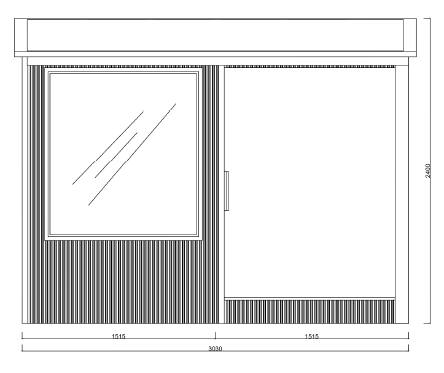 外形寸法 ⻑さ3000 mm・幅 2000 mm ドアサイズ 高さ1500 mm・幅565 mm